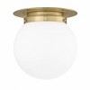 Deliver clean artistic quality into your space with this chic flush mount fixture from our Calhoun collection. This fixture stands out with a white opal glass globe attached to warm heritage brass finish steel framing and metal accents, creating a bold signature statement with easy style.