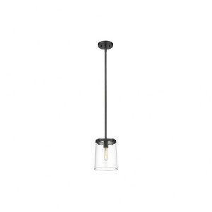 Targeted lighting illuminates a nook or reading space, bringing transitional charm built-in to the Callista one-light mini pendant light. Continue a stylish design scheme with this pendant featuring a hand-crafted matte black finish frame, down rod, and ceiling mount, contrasting with a sparkling tapered glass shade. Cord Length: 110.00 Rod Length(s): 1-3, 1-6, 6-12 Dimmable: Yes Shade Included: Yes