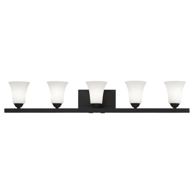 Callista 4-Light Vanity Light - Matte Black & Clear Glass, Dimmable, 37.5" Wide