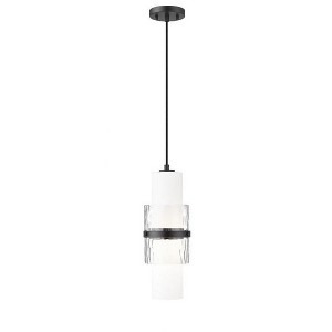 Chic in brushed nickel, this modern one-light pendant is a decorative addition that brings sophisticated energy in any living or dining space. Superbly designed, it centers on a cylinder of etched opal glass that diffuses light beautifully and is augmented with a shorter cylinder of textured clear glass and a decorative cuff in a matching finish. Simply stunning in series over a kitchen island or alone in your den or living room.
