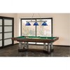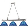 The elegant sheen of the finish and the delicate beauty of its glass shades make this three-light steel billiard light a glamorous addition to any modern home. Suspend this fashionable fixture over a kitchen island, dining table, or pool table to add a balanced aesthetic to interior decor. Room Recommendation: Game Room/Dining Room/Kitchen/Kitchenette Cord Length: 110.00 Chain Length: 72.00 Dimmable: Yes Shade Included: Yes
