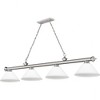 The alluring gleam of the finish and the delicate beauty of its glass shades makes this traditional, four-light metal billiard light an attractive addition to any home. Perfect for kitchens, game rooms, and dining rooms, this effortlessly stylish fixture breathes new life into everyday home decor. Room Recommendation: Game Room/Dining Room/Kitchen/Kitchenette Cord Length: 110.00 Chain Length: 72.00 Dimmable: Yes Shade Included: Yes