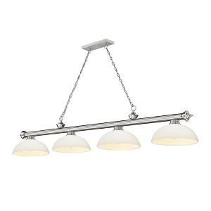 The alluring gleam of the finish and the delicate beauty of its glass shades makes this traditional, four-light metal billiard light an attractive addition to any home. Perfect for kitchens, game rooms, and dining rooms, this effortlessly stylish fixture breathes new life into everyday home decor. Room Recommendation: Game Room/Dining Room/Kitchen/Kitchenette Cord Length: 110.00 Chain Length: 72.00 Dimmable: Yes Shade Included: Yes