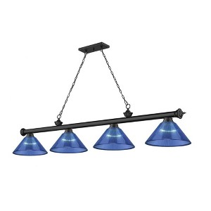 The alluring gleam of the finish and the delicate beauty of its glass shades makes this traditional, four-light metal billiard light an attractive addition to any home. Perfect for kitchens, game rooms, and dining rooms, this effortlessly stylish fixture breathes new life into everyday home decor. Room Recommendation: Game Room/Dining Room/Kitchen/Kitchenette Cord Length: 110.00 Chain Length: 72.00 Dimmable: Yes Shade Included: Yes