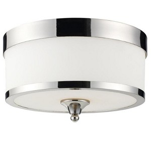 For a cutting edge modern fixture, look no further than this flush mount. A milk white shade is complimented with chrome bands, and accented with a modern styled finial. This flush mount is sure to be great addition to any contemporary space. Bedroom/Dining Room/Foyer/Hallway/Kids Room/Kitchen/Living Room/Office/Utility Room Shade Included: Yes Dimmable: Yes