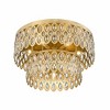 Wide double tiers showcase the sparkling crystal baubles that define this Dealey collection nine-light flush mount ceiling light. An heirloom brass finish is both warm and welcoming, delivering richness and elegance in a piece that mimics a classic chandelier while demanding much less ceiling clearance. Glittering crystal ensures a look that's both glam and elegant, offering eye-catching ambiance in your elevated living space.