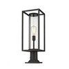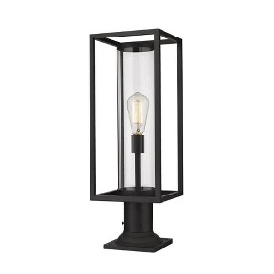 Illuminate your exterior entertainment areas with this modern outdoor pier mounted fixture from the Dunbroch collection. Attach this classy light fixture to walkway columns and corner posts for a striking contemporary vibe, especially with its understated, open rectangular aluminum lantern. This outdoor lantern also features a dark black finish that lend itself to practically any building facade color combinations, as well as a single light sheathed by a clear cylindrical glass globe to illuminate spacious porches and verandas. Room Recommendation: Outdoor Living/Deck/Patio Dimmable: Yes Shade Included: Yes
