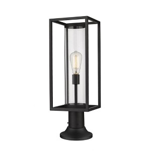 Cast a soothing glow across exterior entertainment areas with this modern outdoor pier mounted fixture from the Dunbroch collection. Place this attractive light fixture to walkway columns and corner posts of a deck or veranda space for a striking, contemporary look. Its minimalist, open rectangular aluminum lantern features a classic, black finish as well as a touch of glamour with a weather-resistant black light fixture stand, sheathed by a transparent cylindrical glass globe. Outdoor Living/Deck/Patio Shade Included: Yes Dimmable: Yes