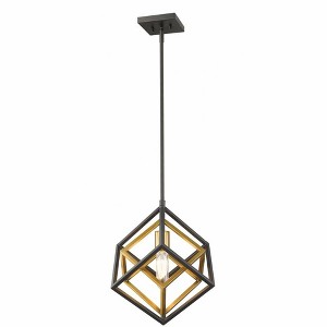 Euclidean geometry influenced cubes bring a fresh architectural twist to this contemporary one-light mini pendant design. Modern chrome and matte black finishes bring a visually striking sense of layered drama to any metropolitan city inspired space. Room Recommendation: Bedroom/Dining Room/Dinette/Kitchen/Kitchenette Rod Length(s): 2-3, 2-6, 10-12 Dimmable: Yes Material: Steel, Finish Color: Chrome/Matte Black, Width: 12", Height: 12.5", Length: 12", Lamping Type: Incandescent, Number Of Bulbs: 1, Wattage: 100 Watts, Dimmable: Yes, Moisture Rating: Dry Rated