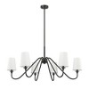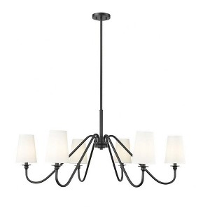 Modern simplicity sets the tone for the elegant Gianna six-light chandelier. In matte black for statement-making presence, it showcases swooping arms and classic candlestick details that pair perfectly with opaque white shades for beautiful illumination. Airy design offers a refined touch in any setting, from your foyer to living or dining room.