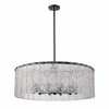 With a grand size and compelling design, this striking light fixture reflects a perfect mix of industrial and gallery design elements. The Glacier round twelve-light pendant offers a decadent look of individual clear textured glass panels that emulate melting ice, an extraordinary effect with dramatic impact in a foyer, kitchen, or main living area. Matte black finish steel is placed as a crown frame, adding a contrast in both style and finish and embellishing the optical delight accomplished when the fixture is illuminated.