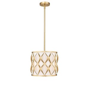 Embrace the timeless design bridging industrial and modern style motifs with a three-light pendant with a bold matte black finish over steel framing. A drum silhouette is aesthetically pleasing as this fixture offers artisan ribbon waves cascading vertically down its banded frame, and a soft white fabric diffuser maintains pleasing lighting effects. Candelabra-style lights and a round canopy complete a checklist of features that round out an iconic look in a pendant that adds elegance to kitchens, foyers, and dining spaces.
