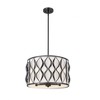 Versatility and an artisan impact calls attention to this transitional matte black finish steel five-light pendant light. A drum silhouette is aesthetically pleasing as this fixture offers artisan ribbon waves cascading vertically down its banded frame, and a soft white fabric diffuser maintains pleasing lighting effects. Candelabra-style lights and a round canopy complete a checklist of features that round out an iconic look in a pendant that adds elegance to kitchens, foyers, and dining spaces.