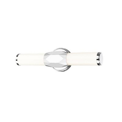 An intricately crafted bracket creates an elegant hint of industrial character for a modern one-light LED vanity light. In brushed nickel with a frosted diffuser, it's a linear design complete with vertical and horizontal elements that create contrast and depth. Bright, dimmable illumination shines through the frosted shade, creating soft, true lighting perfect for grooming and ambiance.