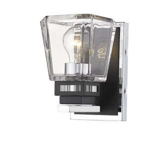 Linear design elements with elegant materials deliver a must-have look for a custom living space. Mid-Century Modern flavor stylizes this one-light wall sconce, showcasing a thick square glass shade mounted to a Brushed Nickel finish frame with a Matte Black surface. Bathroom/Powder Room/Bedroom/Hallway Mounting Direction: Up/Down Shade Included: Yes Dimmable: Yes