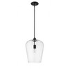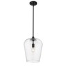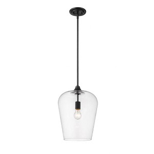 Designed with sleek metal lines and an elegant silhouette, this matte black pendant is a stunning home decor upgrade. This single-light fixture features a clear glass shade for a magnificent display of light. Room Recommendation: Bedroom/Dining Room/Dinette/Foyer/Hallway/Kids Room/Kitchen/Kitchenette/Living Room/Office Rod Length(s): 1-3, 1-6, 6-12 Dimmable: Yes Shade Included: Yes Material: Steel, Finish Color: Matte Black, Width: 12", Height: 16.25", Lamping Type: Incandescent, Number Of Bulbs: 1, Wattage: 100 Watts, Dimmable: Yes, Moisture Rating: Dry Rated