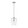 Designed with modern elegance in mind, this brushed nickel pendant is a stunning home decor upgrade. A single light beneath a clear glass shade is suspended from a sleek metal frame to create a magnificent display of light. Material: Glass, Finish Color: Brushed Nickel, Width: 9", Height: 12.25", Lamping Type: Incandescent, Number Of Bulbs: 1, Wattage: 100 Watts, Dimmable: Yes, Moisture Rating: Dry Rated