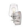 Upscale sophistication with a Mid Century Modern vibe tells the story of this elegant one-light wall sconce. A blend of delightful materials offers a stunning large glass shade with Brushed Nickel finish metal, delivering a versatile palette that embellishes the look of any transitional space. Bathroom/Powder Room/Bedroom/Hallway Mounting Direction: Up/Down Shade Included: Yes Dimmable: Yes
