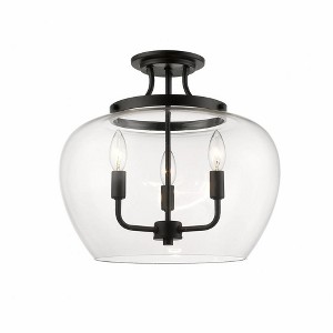 Designed with modern elegance in mind, this matte black semi-flush mount ceiling light is a stunning home decor upgrade. Three lights beneath a clear glass shade are suspended from a sleek metal frame to create a magnificent display of light. Room Recommendation: Bathroom/Bedroom/Dining Room/Dinette/Foyer/Game Room/Hallway/Kids Room/Kithcen/Kitchenette/Living Room/Office/Utility Room Dimmable: Yes Shade Included: Yes