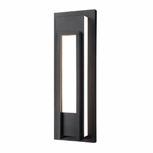 Indulgent geometric design principles play out in a bold, edgy form as this modern one-light outdoor wall sconce from the Keaton collection raises the level of elegance. Update an exterior structure with this light built of black and white aluminum with overlapping linear panels and a glass diffuser. Energy-efficient LED lighting offers savings and extends the life of a chic fixture.