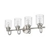 The industrial-inspired Kinsley Collection of pendant and vanity fixtures uses simple, artisanal detailing to create a timeless statement. The vintage-influenced craftmanship is finished in a choice of Brushed Nickel, Matte Black, Chrome, and Heritage Gold. Room Recommendation: Bathroom/Powder Room Mounting Direction: Up/Down Dimmable: Yes Shade Included: Yes Material: Steel, Finish Color: Brushed Nickel, Width: 28", Height: 9.5", Length: 6", Depth: 6", Backplate Width: 5.25", Backplate Length: 5.25", Lamping Type: Incandescent, Number Of Bulbs: 4, Wattage: 100 Watts, Dimmable: Yes, Moisture Rating: Damp Rated