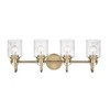 The industrial-inspired Kinsley Collection of pendant and vanity fixtures uses simple, artisanal detailing to create a timeless statement. The vintage-influenced craftmanship is finished in a choice of Brushed Nickel, Matte Black, Chrome, and Heritage Gold. Room Recommendation: Bathroom/Powder Room Mounting Direction: Up/Down Dimmable: Yes Shade Included: Yes Material: Steel, Finish Color: Brushed Nickel, Width: 28", Height: 9.5", Length: 6", Depth: 6", Backplate Width: 5.25", Backplate Length: 5.25", Lamping Type: Incandescent, Number Of Bulbs: 4, Wattage: 100 Watts, Dimmable: Yes, Moisture Rating: Damp Rated