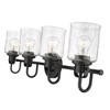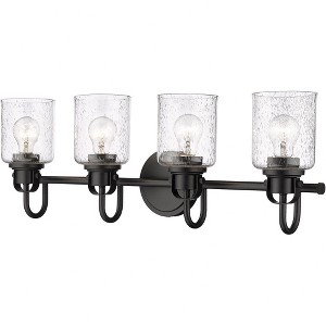 The industrial-inspired Kinsley Collection of pendant and vanity fixtures uses simple, artisanal detailing to create a timeless statement. The vintage-influenced craftmanship is finished in a choice of Brushed Nickel, Matte Black, Chrome, and Heritage Gold. Room Recommendation: Bathroom/Powder Room Mounting Direction: Up/Down Dimmable: Yes Shade Included: Yes Material: Steel, Finish Color: Brushed Nickel, Width: 28", Height: 9.5", Length: 6", Depth: 6", Backplate Width: 5.25", Backplate Length: 5.25", Lamping Type: Incandescent, Number Of Bulbs: 4, Wattage: 100 Watts, Dimmable: Yes, Moisture Rating: Damp Rated
