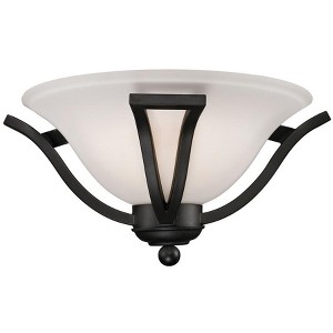 A single light wall sconce in matte black finish and matte opal shade adds a majestic flavour to your home. Bathroom/Powder Room/Bedroom/Hallway Mounting Direction: Up/Down Shade Included: Yes Dimmable: Yes Material: Glass, Finish Color: Matte Black, Width: 15", Height: 7", Length: 7.5", Depth: 7.5", Backplate Width: 4", Backplate Length: 8", Lamping Type: Incandescent, Number Of Bulbs: 1, Wattage: 100 Watts, Dimmable: Yes, Moisture Rating: Damp Rated