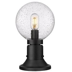 Sophistication and style goes a bit casual with a Mid-Century motif. This one-light outdoor pier mounted fixture from the Laurent collection is fashioned of versatile black finish aluminum in a frame with a charming and lightly dressed up base. A delicate clear seedy glass globe creates ultimate elegance and artistry. Material: Aluminum, Finish Color: Black, Width: 8", Height: 13.5", Length: 8", Lamping Type: Incandescent, Number Of Bulbs: 1, Wattage: 60 Watts, Dimmable: Yes, Moisture Rating: Wet Rated