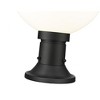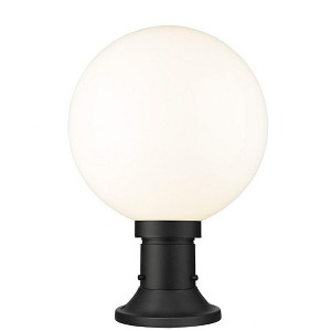 Mid-Century Modern vibes enrich this exterior light fixture, creating a stark palette contrast and a retro-inspired dose of festivity. From the Laurent collection comes a one-light outdoor pier mounted fixture delivering no shortage of personality and a quaint look ideal for gardens and walkways. This light fixture features construction of versatile black finish aluminum and is topped with a festive opal glass globe.