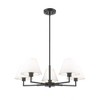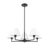 Modern flexibility of design plays up the chic, understated character of a five-light chandelier. Expertly designed with simplicity at the forefront, the chandelier pairs a brushed nickel finish frame with straight suspension and complementary angularity, all capped with conical shades that create the perfect hint of dimensionality for a fixture that looks great everywhere from the dining room to a bedroom dressing area.