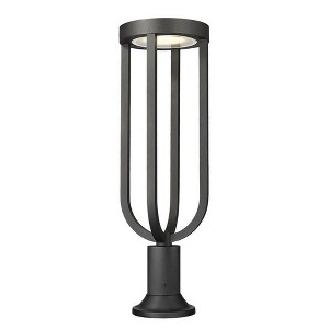 This modern one-light outdoor post mount fixture sets the tone on your deck or patio with its eye-catching profile and selectable color temperature. Perfect for railings, stairs, and more, the light features an energy efficient LED and a sand black finish for marine-grade durability, all complementing a sleek silhouette that includes an open cage lantern with a teardrop shape that adds graceful elegance.