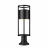 Attention to detail and a bold finish merge to create a compelling look in exterior lighting. Choose this one-light outdoor pier mounted fixture from the Luca series, embracing an openwork cylinder frame featuring black aluminum with an etched glass diffuser. LED lighting offers energy efficiency to embellish its value. Material: Aluminum, Finish Color: Black, Width: 7.25", Height: 23.75", Length: 7.25", Lamping Type: LED, Number Of Bulbs: 1, Wattage: 8 Watts, Cri: 90, Color Temperature: 2700 Kelvin, Lumens: 270, Dimmable: Yes, Moisture Rating: Wet Rated