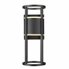 Dramatic geometric minimalism goes bold with an exterior light perfect for elevating a residential structure. This two-light outdoor wall sconce from the Luca series offers an openwork cylinder frame and wall plate featuring black aluminum with an etched glass diffuser. LED lighting offers energy efficiency to embellish its value. Material: Aluminum, Finish Color: Black, Width: 7.25", Height: 18", Length: 8", Backplate Width: 6.75", Backplate Length: 8.25", Lamping Type: LED, Number Of Bulbs: 2, Wattage: 8 Watts, Cri: 90, Color Temperature: 2700 Kelvin, Lumens: 540, Dimmable: Yes, Moisture Rating: Wet Rated