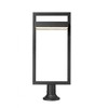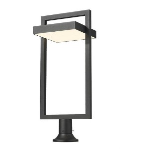 A cutting-edge solution for illuminating your contemporary patio, deck or garden area, this one-light outdoor pier mounted fixture delivers chic minimalism with its angular bold black finish aluminum frame. A sand blast finish white glass shade uses LED-integrated technology to provide a strong, energy-efficient glow to light up evenings outdoors. The light is supported by a sturdy rounded base. Color Temperature: 2700K Lumens: 1120 CRI: 90 Room Recommendations: Outdoor Living/Deck/Patio Shade Included: Yes