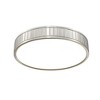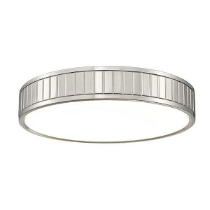 Illumination glowing from above adds stealth yet stylish aesthetics in this one-light flush mount ceiling light. Steel construction forms a ring canopy with a brushed nickel finish and vertical slats nestling a frosted acrylic diffuser that infusing optional and changeable white-color values to light up a modern kitchen, dining room, or foyer.