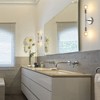 The lustrous character of chrome finish steel shines brightly, bringing a notable quality to this two-light wall sconce. From the Modernist collection, this contemporary sconce delivers a sleek linear design with a vertical frame hosting bulbs at each end, and a round wall mount offering visual balance. Dimmable: Yes Material: Steel, Finish Color: Chrome, Width: 5", Height: 14.75", Length: 4.75", Backplate Width: 5", Backplate Length: 5", Lamping Type: Incandescent, Number Of Bulbs: 2, Wattage: 60 Watts, Dimmable: Yes, Moisture Rating: Damp Rated