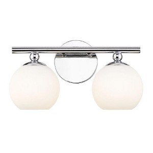 Make modern style work in an updated bath space with this two-light vanity light from the Neoma collection. Symmetry and a hint of festive retro influence blend to add an outspoken design aesthetic featuring side-by-side opal etched glass globe shades affixed to a minimalist frame made of brushed nickel finish steel. This contemporary vanity light transforms a master ensuite or guest bath into a haven for style.