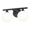 Make modern style work in an updated bath space with this two-light vanity light from the Neoma collection. Symmetry and a hint of festive retro influence blend to add an outspoken design aesthetic featuring side-by-side opal etched glass globe shades affixed to a minimalist frame made of brushed nickel finish steel. This contemporary vanity light transforms a master ensuite or guest bath into a haven for style.