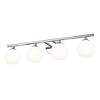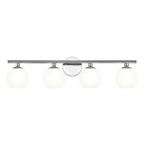 From the Neoma collection comes a tastefully elegant yet festive and fun fixture perfect for modern ensuite or guest bath spaces. This four-light vanity wall light shows off iconic globe shades made of opal etched glass, all affixed to a minimalist-inspired frame and mount crafted of brushed nickel finish steel. The expressive personality of a wall light with a hint of retro influence delivers personality along with ambient lighting for a contemporary bathroom.