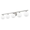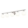 With a sleek brushed nickel finish frame and delicate opal etched glass orb shades, this stylish five-light vanity light from the Neoma collection becomes a focal point in a contemporary ensuite or guest bathroom. A bit of retro influence makes its way into a minimalist classic look with a wide reach aimed at highlighting larger bath vanities.