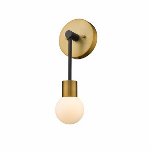 This elegant wall sconce from the Neutra collection lends a charming design with an Art Deco flair. Perfect for a contemporary home, this drop pendant wall sconce features a steel structure and a two-tone finish of matte black and warm, lustrous foundry brass. In addition, its opal globe diffuses a soft, soothing glow to create a relaxing environment. Bathroom/Powder Room/Bedroom/Hallway Mounting Direction: Up/Down Shade Included: Yes Dimmable: Yes