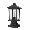 The timeless, mission styling of the Portland family displays clean lines to suit both contemporary and traditional decors. Clear beveled glass paired with black comprised of cast aluminum which withstands natures seasonal elements. Outdoor Living/Deck/Patio Shade Included: Yes Dimmable: Yes Material: Glass, Finish Color: Black, Width: 8", Height: 17", Fitter Size: 3 Inch", Lamping Type: Incandescent, Number Of Bulbs: 1, Wattage: 100 Watts, Dimmable: Yes, Moisture Rating: Wet Rated