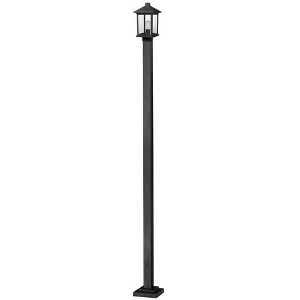 The timeless, mission styling of the Portland family displays clean lines to suit both contemporary and traditional decors. Clear seedy glass paired with oil rubbed bronze fixtures. These fixtures are comprised of cast aluminum which withstands natures seasonal elements. Outdoor Living Shade Included: Yes Dimmable: Yes Material: Glass, Finish Color: Black, Width: 9.25", Height: 109.375", Fitter Size: 3 Inch", Lamping Type: Incandescent, Number Of Bulbs: 1, Wattage: 100 Watts, Dimmable: Yes, Moisture Rating: Wet Rated