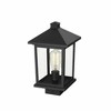 The timeless, mission styling of the Portland family displays clean lines to suit both contemporary and traditional decors. Clear seedy glass paired with oil rubbed bronze fixtures. These fixtures are comprised of cast aluminum which withstands natures seasonal elements. Outdoor Living/Deck/Patio Shade Included: Yes Dimmable: Yes Material: Aluminum, Finish Color: Black, Width: 8", Height: 14.375", Lamping Type: Incandescent, Number Of Bulbs: 1, Wattage: 100 Watts, Dimmable: Yes, Moisture Rating: Wet Rated