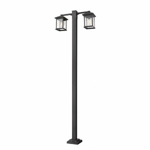 Add beautiful, abundant illumination with this four-light overhead outdoor post light. Designed for permanent installation, this tall post fixture features a versatile rubbed bronze finish and lantern-inspired lights that enhance any exterior space. Outdoor Living/Deck/Patio Shade Included: Yes Dimmable: Yes Material: Aluminum, Finish Color: Black, Width: 8", Height: 99", Fitter Size: 3 Inch", Lamping Type: Incandescent, Number Of Bulbs: 2, Wattage: 100 Watts, Dimmable: Yes, Moisture Rating: Wet Rated