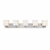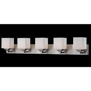 This stylish, five light vanity lamp with its brushed nickel finish and matte opal shades is a tasteful addition to any washroom. Room Recommendation: Bathroom/Powder Room Mounting Direction: Up/Down Dimmable: Yes Shade Included: Yes Material: Glass, Finish Color: Brushed Nickel, Width: 38.5", Height: 6.75", Length: 6", Depth: 6", Backplate Width: 4.25", Backplate Length: 38", Lamping Type: Incandescent, Number Of Bulbs: 5, Wattage: 100 Watts, Dimmable: Yes, Moisture Rating: Damp Rated