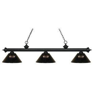 Traditional charm defines this three light fixture. The bar is finished in Matte Black and Antique Copper and is paired beautifully with three multi colored tiffany shades for an inviting glow. This fixture would be equally at home in the game room, or anywhere else in your home needing a touch of timeless charm. Game Room/Dining Room/Kitchen/Kitchenette Shade Included: Yes Cord Length: 110.00 Dimmable: Yes