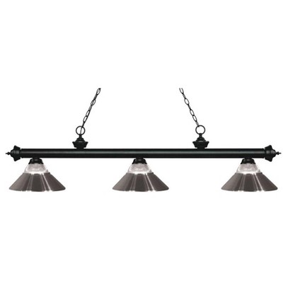 Traditional charm defines this three light fixture. The bar is finished in Matte Black and Antique Copper and is paired beautifully with three multi colored tiffany shades for an inviting glow. This fixture would be equally at home in the game room, or anywhere else in your home needing a touch of timeless charm. Game Room/Dining Room/Kitchen/Kitchenette Shade Included: Yes Cord Length: 110.00 Dimmable: Yes