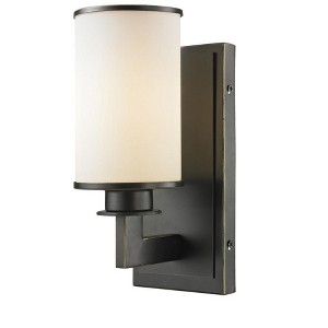 The contemporary Savannah family adds sophistication to home decor. The beautifully appointed brushed nickel fixture is perfectly paired with a matte opal glass shade in this 1 light wall sconce. Bathroom/Powder Room/Bedroom/Hallway Mounting Direction: Up/Down Shade Included: Yes Dimmable: Yes Material: Glass, Finish Color: Brushed Nickel, Width: 4.5", Height: 10.25", Length: 5.5", Depth: 5.5", Backplate Width: 10.25", Backplate Length: 4.5", Lamping Type: Incandescent, Number Of Bulbs: 1, Wattage: 100 Watts, Dimmable: Yes, Moisture Rating: Damp Rated